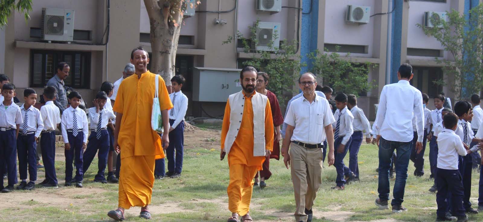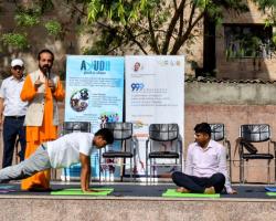 The 999 challenge continued in all the schools of Delhi. Today the Amrita team of Br Mokshamrita, Br Harshamrita, Mr Lavan Jain, Ms Mini Mohan and Mr Pradeep Gupta visited the Govt. Girls Senior Secondary School, Vasant Kunj (New Delhi). Many students of this school regularly come to Amma's ashram located nearby , to attend tuition and yoga classes, and they are the ones leading the Surya Namaskar daily in this school. The students and the staff enthusiastically participated in the challenge. Discussion was conducted on the benefits of this practice, and the students are eager to make this a part of their daily lives.
