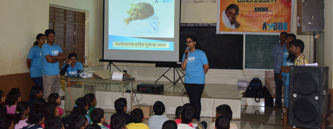 On 25th September 2016, a team of AYUDH members of Pune chapter celebrated Amritavarsham 63 -Amma’s 63rd birthday in a unique way with the deprived children of a nearby slum.