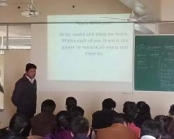 Prof. Parshva Shah, the AYUDH coordinator at Indus University and his team organized an invited talk on Swami Vivekananda's Life and Teachings for 75 registered participants. Some of the slides were shown to inspire the youth. The teachings were made into slides to show the youth about Swami Vivekanada’s lessons.