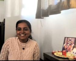 In spite of her busy schedule of work and seva, she joins us all the way from France every Sunday between 12pm – 1pm IST. She takes the participants through the whole bhajan starting from the basic information to selecting the right pitch for a bhajan, the talam a bhajan is set to and even hints at the different variations that can be taken along with making us understand the meaning of each bhajan to help connect better and truly feel the song.