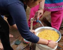 The trek begins leisurely since the first day of the trek involves a short hike of 6 kms. As we start our gentle ascend our first stop was Sri Hemavathi Ganapathy Temple. Mr. Dinesh Holla gave us a small introduction about the temple's history explaining the intricacies of its existence. It also happens to be the origin of the magnificent river Hemavathi. An hour into the climb we could see scenery and beauty of the village that cluster in and around the foothill of Western Ghats. Then the trail is a paved pathway which goes up the mountain. One final pit-stop for the day, when we decided to camp. We halted at one of the local villager’s backyard, where we erected our tents and cooked our dinner.