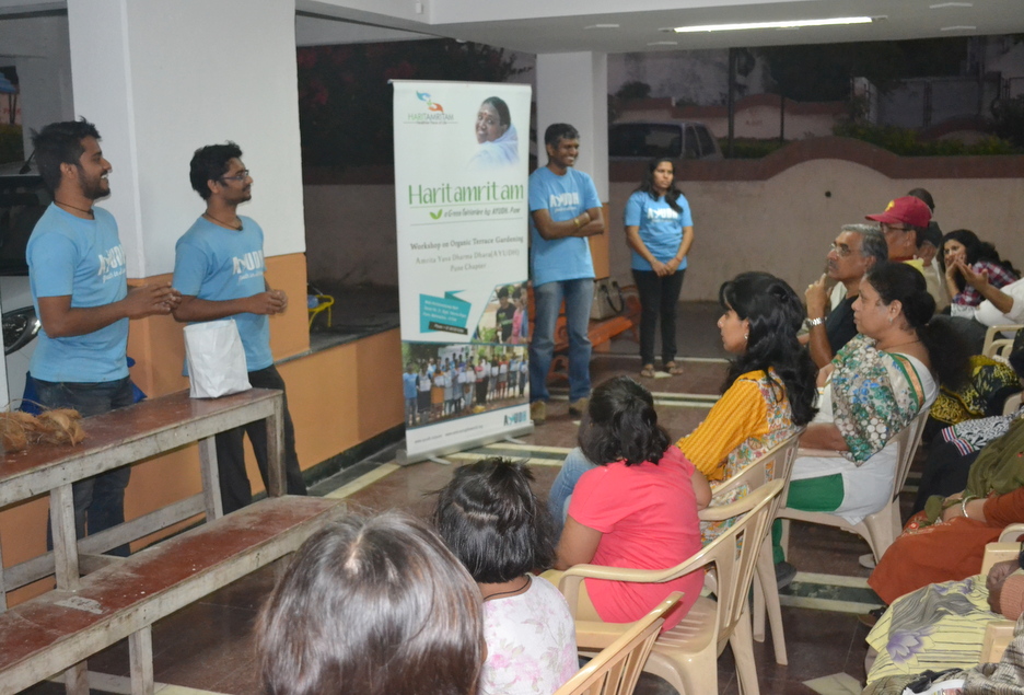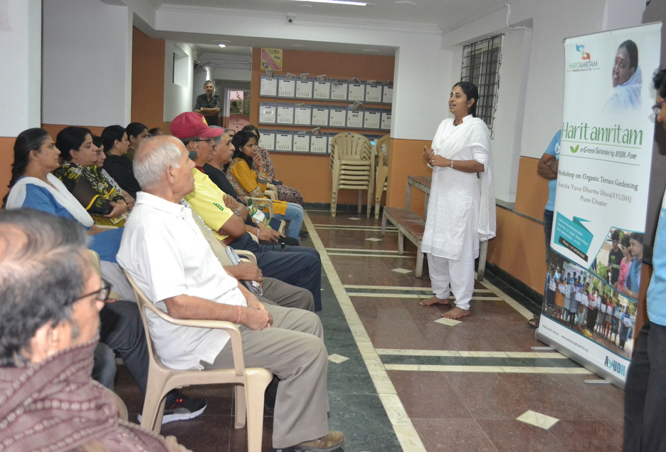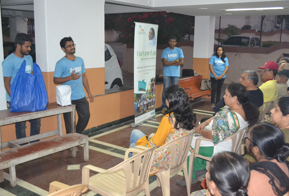 The Haritamritam Workshop was conducted in Sunshree Woods on 19th November, 2016. All the residents enthusiastically participated in it. They came forward with lot of queries as many of them have tried cultivating veggies at home. The members expressed their determination to continue practicing organic gardening on their terraces and send their respective updates to the AYUDH members.