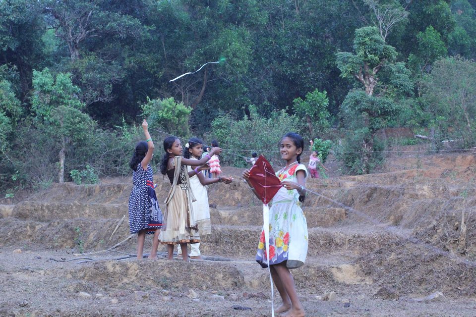 The village kids were taught to make kites by Mr. Sanil (an Internationally renowned kite flyer representing Team Mangalore).
