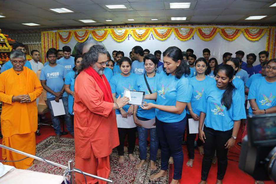 AYUDH launching their new project 'Each One Teach One,' during Pujya Swamiji's visit at Mumbai Ashram.