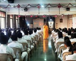 The selection process for the first batch of AYUDH Self-Management Internship Program (ASIP Level 1) was done in 2 phases in Ahmedabad, Gujarat. Separate sessions were conducted for the AYUDH members from the prestigious educational institutions & organizations and for the AYUDHians from Amrita Vidyalayam, Ahmedabad. The AYUDH Coordinators from the AYUDH National Coordination Team from Amritapuri had a wonderful interaction with the young minds. It was inspiring to see the enthusiasm of the participants to learn more about Sanatana Dharma. The AYUDHians of Ahmedabad Chapter actively participated in the interview & selection process and the best candidates who completely met the pre-requisite has been selected for the first batch of ASIP.