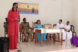 Sampujya Swami Jnanamritananda Puri blessed the event organised by the ayudhians for International Yoga Day.