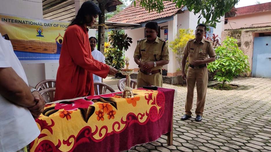 Yoga training at muvattupuzha hospital sub-jail. Sampūjya Swami Jñānāmr̥tānandapuri, participated in the event.